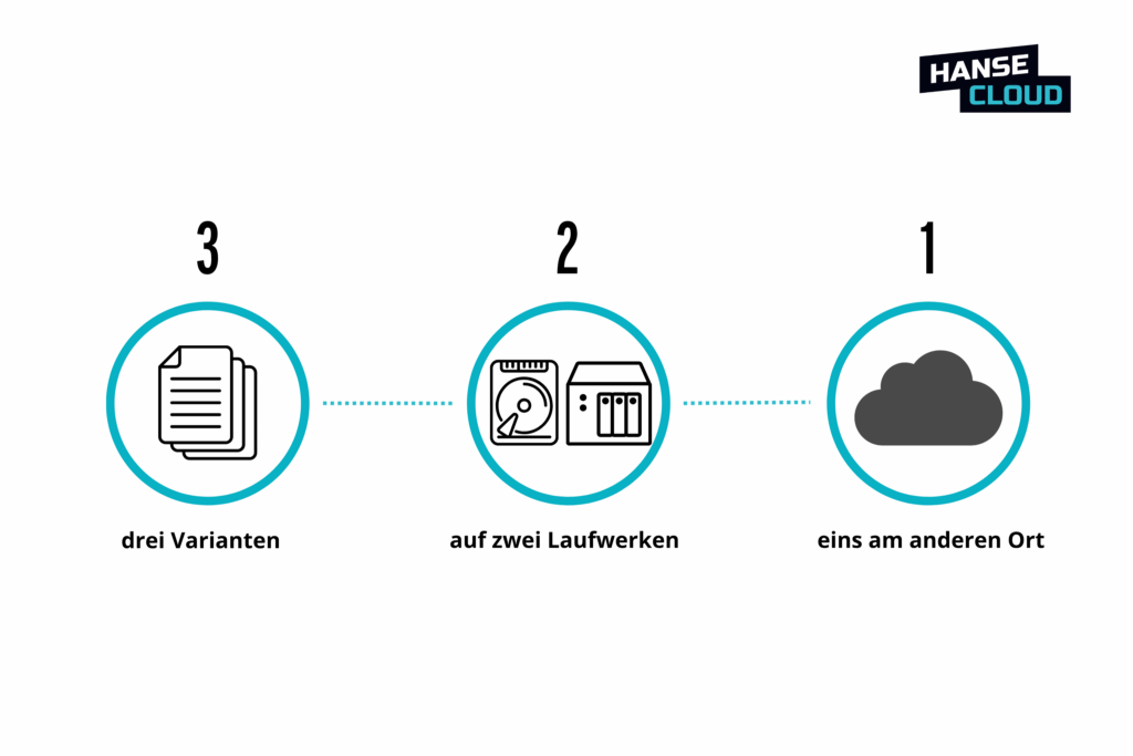 Unser Online-Backupservice speichert Deine Daten zuverlässig in deutschen Rechenzentren und unterstützt Dich optimal bei der Umsetzung einer 3-2-1-Backup-Strategie. Ob als feste Strategie oder einfach für mehr Sicherheit im Alltag – mit HanseCloud Backup sind Deine Daten jederzeit geschützt.