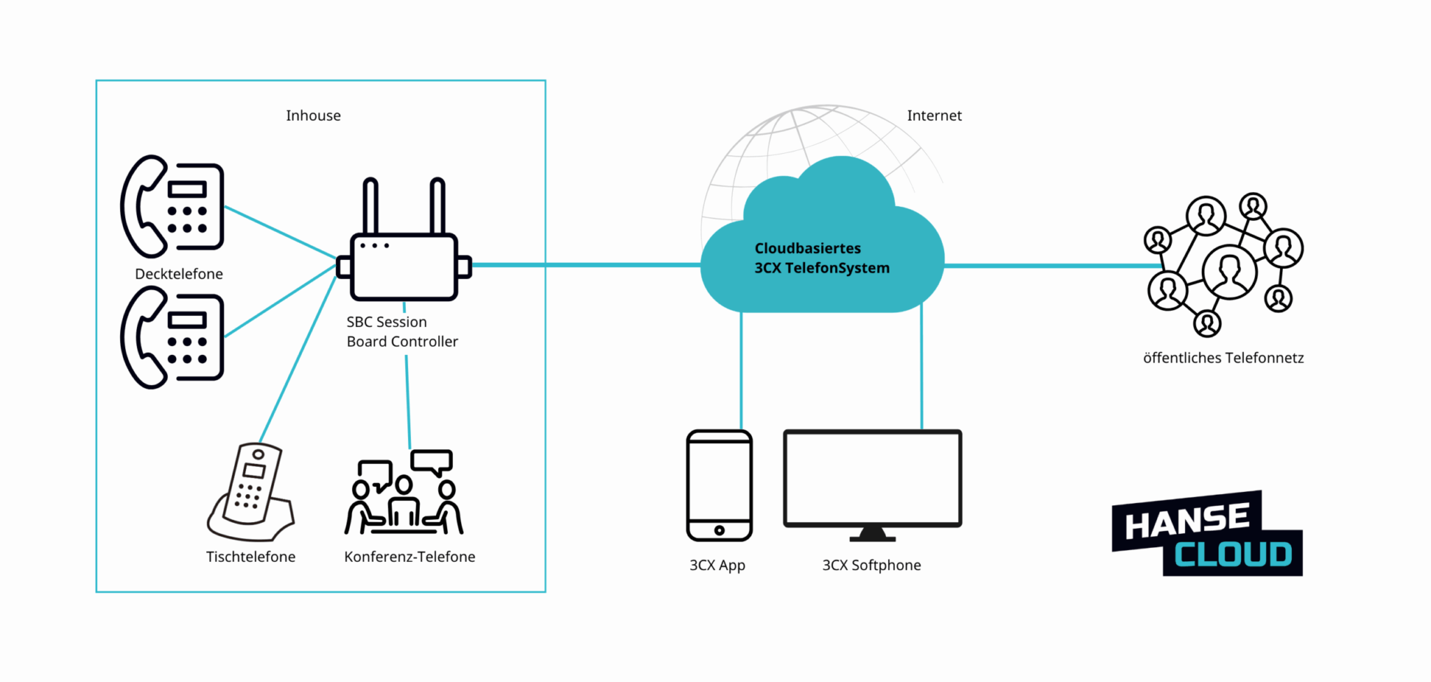 Hosted 3CX ist eine vollständig cloudbasierte Telefonanlage, bei der HanseCloud die Infrastruktur, Lizenzierung und Wartung übernimmt. Du nutzt alle Funktionen von 3CX — ohne eigene Hardware vor Ort.